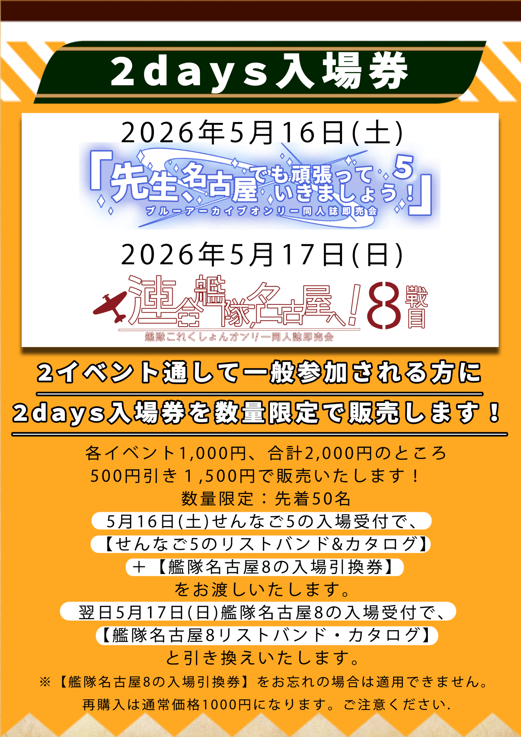両日一般参加される方へ、お得な2days入場券を数量限定で頒布します。
